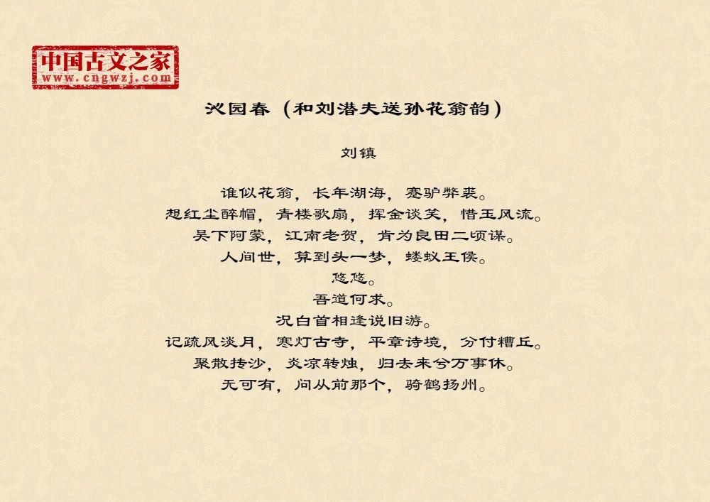 《沁园春(和刘潜夫送孙花翁韵)》的原文打印版(刘镇)