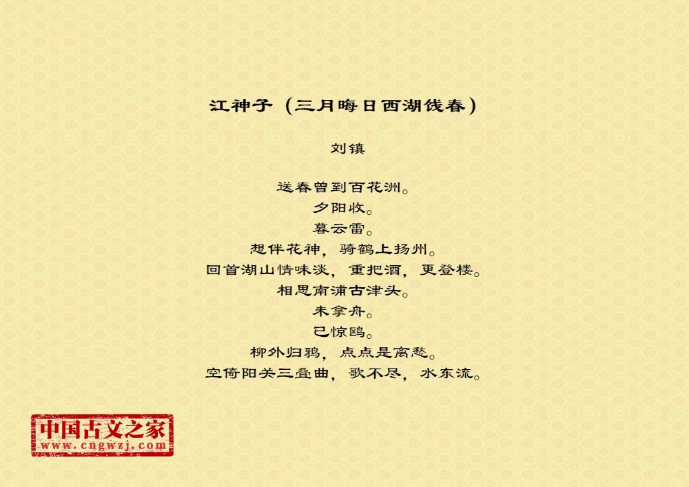 《江神子(三月晦日西湖饯春)》的原文打印版(刘镇)