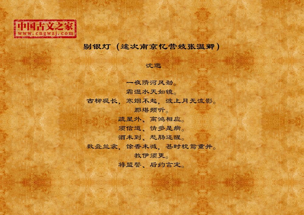 《剔银灯(途次南京忆营妓张温卿)》的原文打印版(沈邈)