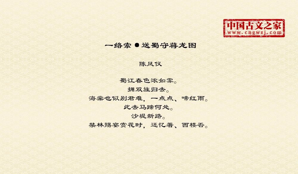 《一络索·送蜀守蒋龙图》由陈凤仪创作