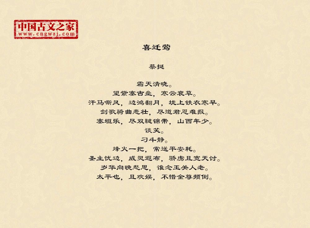 说明:古文之家的工作重心是对古诗文进行校对并注音,我们所提供的译文、注释均来自互联网收集聚合,仅供参考,文章所涉及的字、词发音请以拼音版作为主要参考。