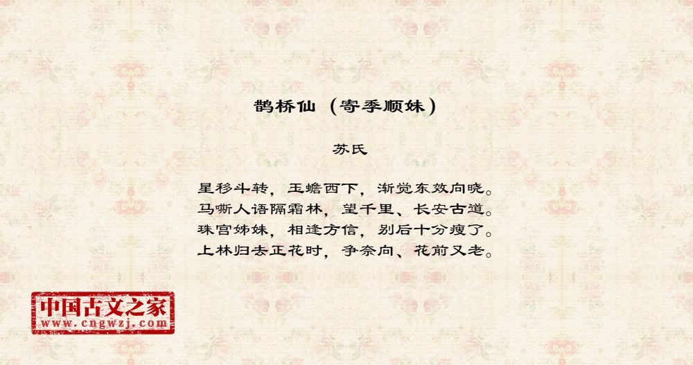 《鹊桥仙(寄季顺妹)》由苏氏创作