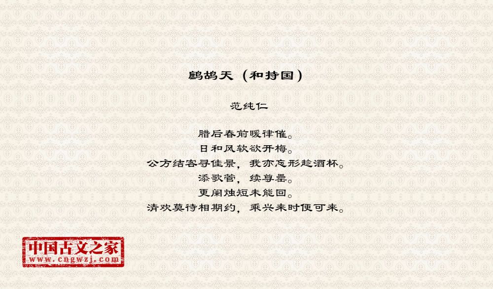 《鹧鸪天(和持国)》的原文打印版(范纯仁)