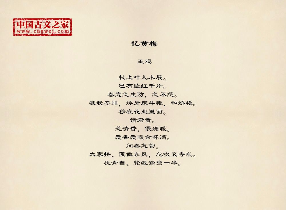 王观(1035--1100),字通叟,生于如皋(今江苏如皋),北宋著名词人。 王安石为开封府试官时,他得中科举及第。宋仁宗嘉佑二年(105