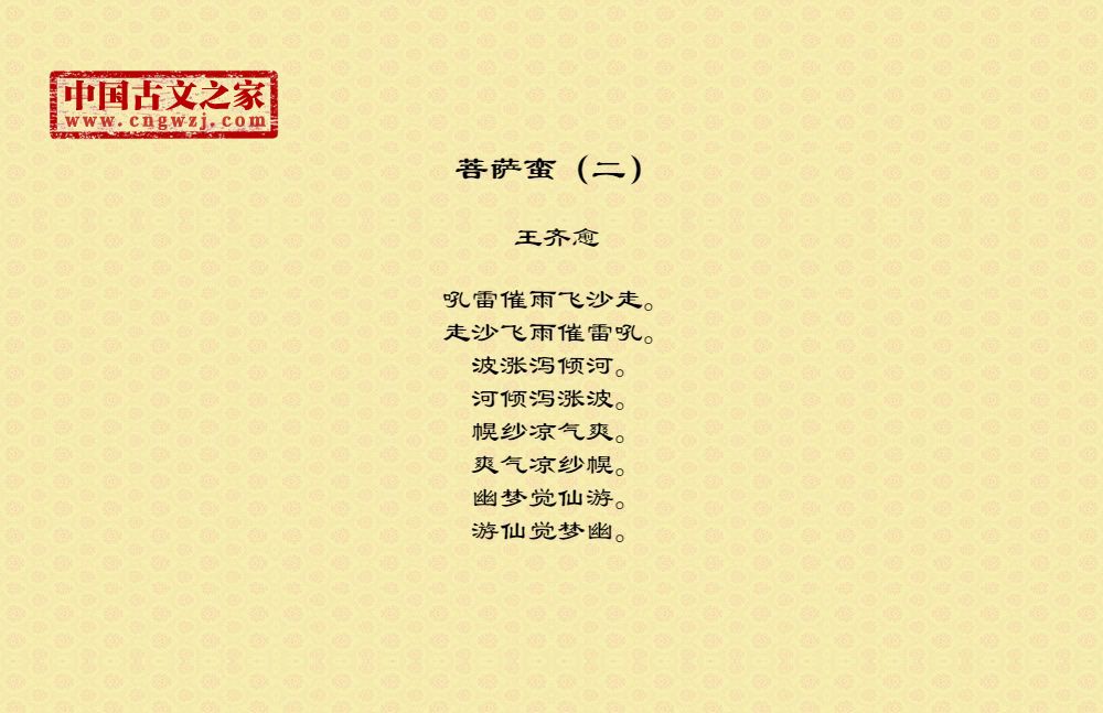 《菩萨蛮(二)》的原文打印版(王齐愈)