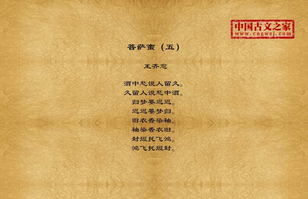 《菩萨蛮(五)》的原文打印版(王齐愈)