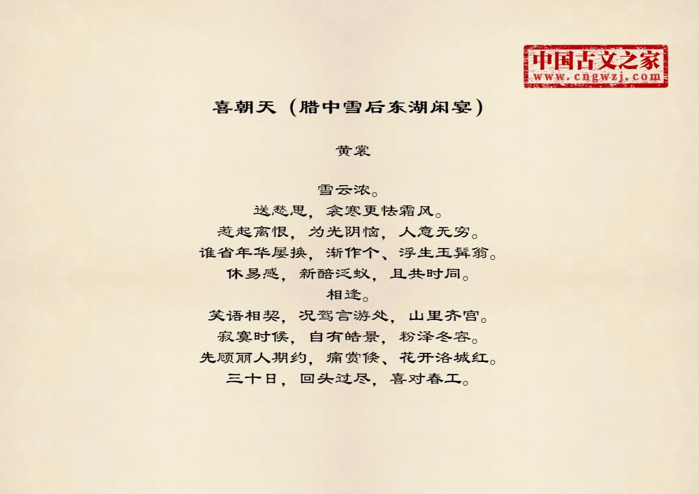 《喜朝天(腊中雪后东湖闲宴)》的原文打印版(黄裳)