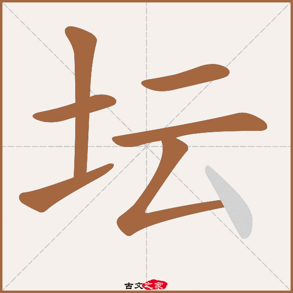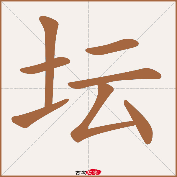 基础信息 | “坛”字,繁体为:壇,仓颉代码为:GMMI,四角号码:41132,五笔输入法:FFCY,uicode代码为:U+575B,郑码为:BBZS,电码:-,规范字编号:0614, “坛”字,部首为:土,总笔画:七画,部外笔画:四画,字形分解:土云(tuyun),汉字构造:土云,,汉字吉凶:吉,属姓氏, 笔画顺序:一丨一一一フ丶, 笔画顺序读作:横竖横横横折捺, “坛”字在《康熙字典》位置:《康熙字典》第240页 第022字, 宋本广韵中描述:-, 其它字典出处:[ 故训彙纂 ]:448|0526.8,[ 康熙字典 ]:页226第10,[ 汉语字典 ]:卷1页0421第09, |
