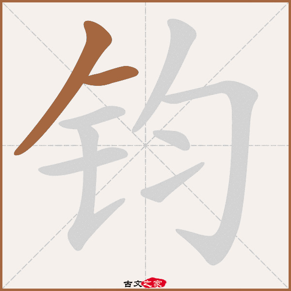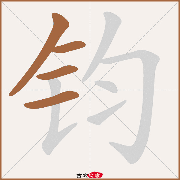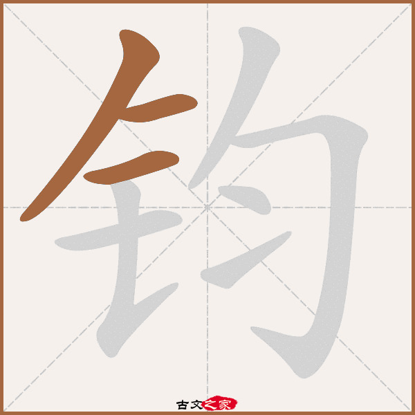 | 基础信息 | “钧”字,繁体为:鈞,仓颉代码为:XCPIM,四角号码:87720,五笔输入法:QQUG,uicode代码为:U+94A7,郑码为:PRTD,电码:-,规范字编号:1533, “钧”字,部首为:钅,总笔画:九画,部外笔画:四画,字形分解:钅匀(jinyun),汉字构造:钅勹冫,,汉字吉凶:吉,属姓氏, 笔画顺序:ノ一一一フノフ丶一, 笔画顺序读作:撇横横横折撇折捺横, “钧”字在《康熙字典》位置:《康熙字典》第1299页 第01字, 宋本广韵中描述:-, 其它字典出处:[ 故训彙纂 ]:2364|2442.11,[ 康熙字典 ]:页1328第06, |