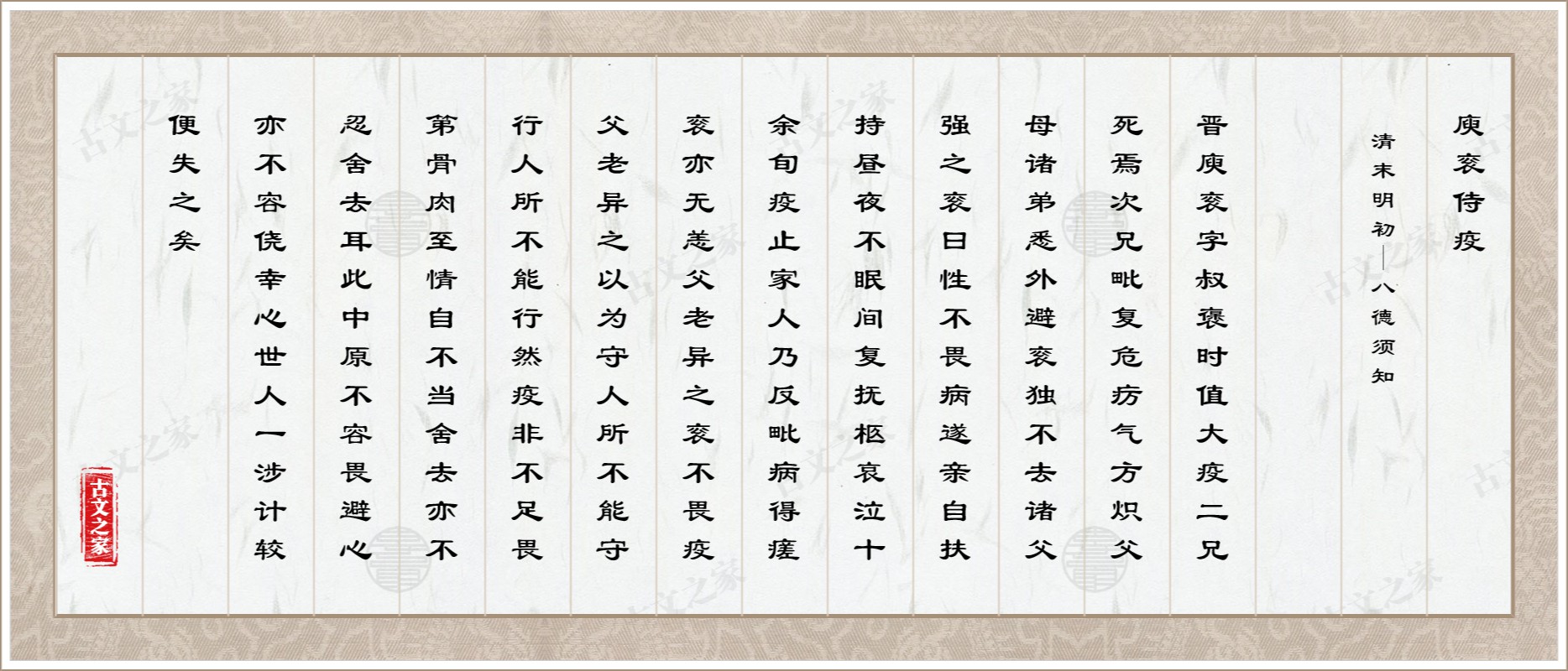 瘟疫非常严重,家里的父母和弟弟们都跑到外面避难去了,只有庾衮坚持不走。