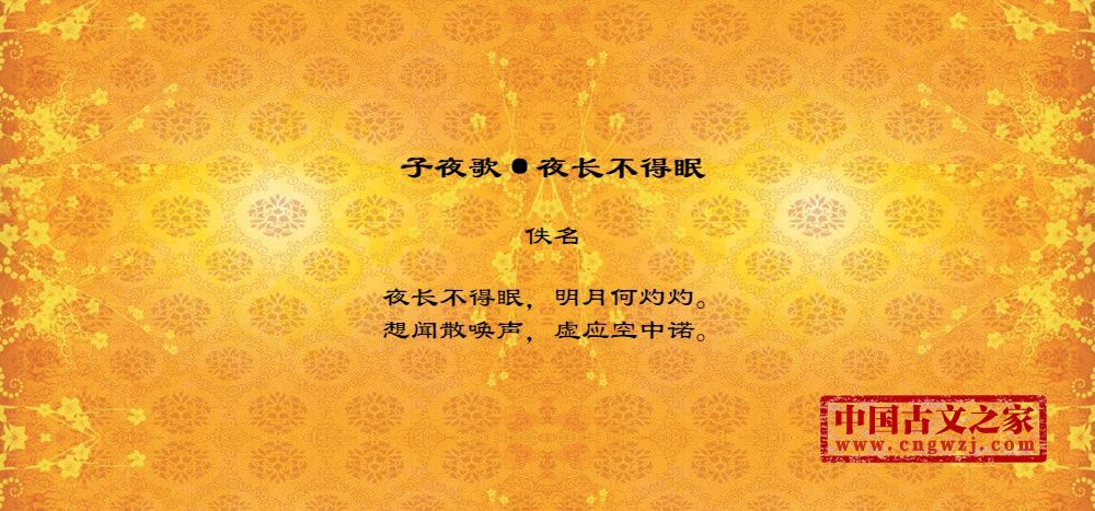 夜长不得眠,明月何灼灼。长夜漫漫难以入眠,明月为何如此明亮耀眼。想闻散唤声,虚应空中诺。仿佛听见远处有人断断续续呼唤我的名字,不由地对着虚空轻声应答。