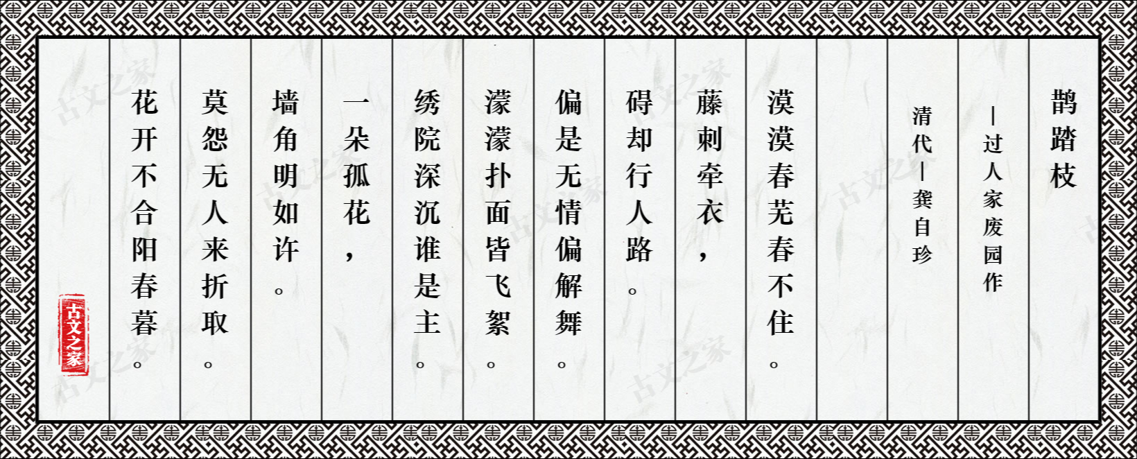 尽管废园之中,一丛丛的野草在春天里生机盎然,却也不能把春光留住。