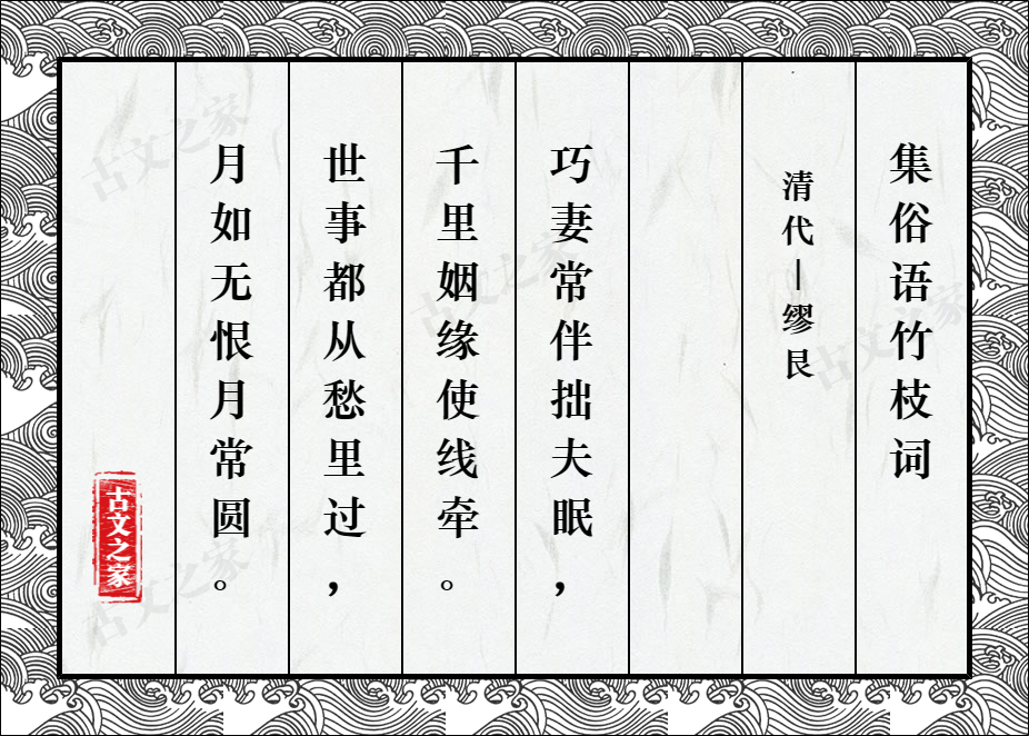 巧妻常伴拙夫眠,千里姻缘使线牵。 世事都从愁里过,月如无恨月常圆。 ...