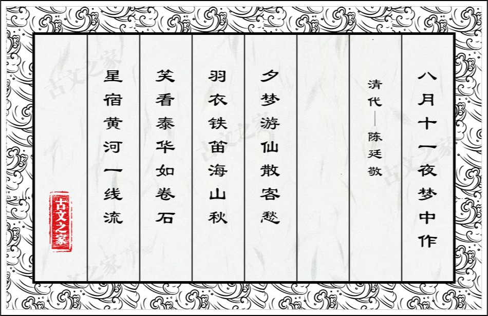 《八月十一夜梦中作》的原文打印版陈廷敬