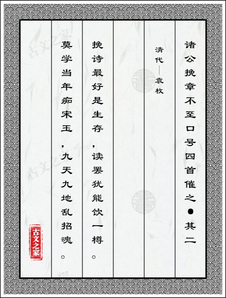 《诸公挽章不至口号四首催之·其二》的原文打印版袁枚