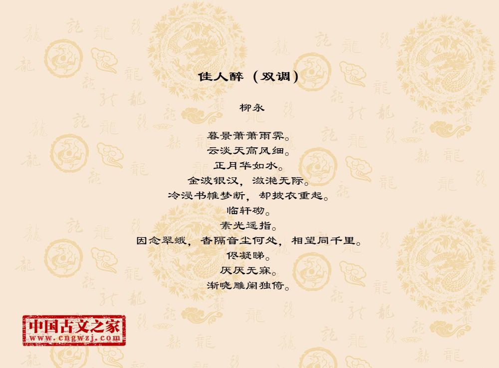 柳永,(约987年—约1053年)北宋著名词人,婉约派创始人物。汉族,崇安(今福建武夷山)人,原名三变,字景庄,后改名永,字耆卿,排行第七,又称柳七。
