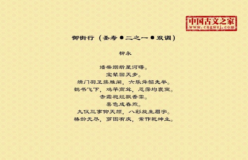 《御街行(圣寿·二之一·双调)》的原文打印版(柳永)