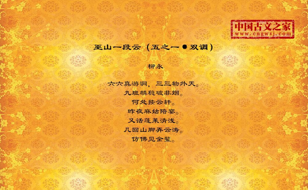 《巫山一段云(五之一·双调)》的原文打印版(柳永)