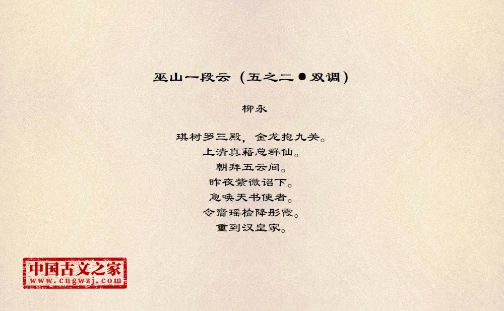《巫山一段云(五之二·双调)》的原文打印版(柳永)