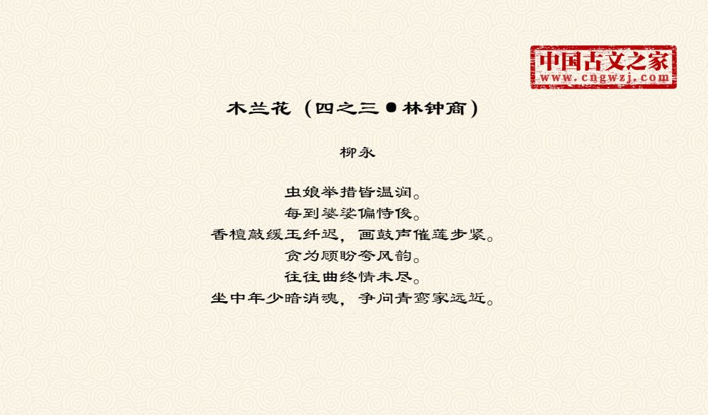 虫娘举措皆温润。每到婆娑偏恃俊。香檀敲缓玉纤迟,画鼓声催莲步紧。贪为顾盼夸风韵。往往曲终情未尽。坐中年少暗消魂,争问青鸾家远近。