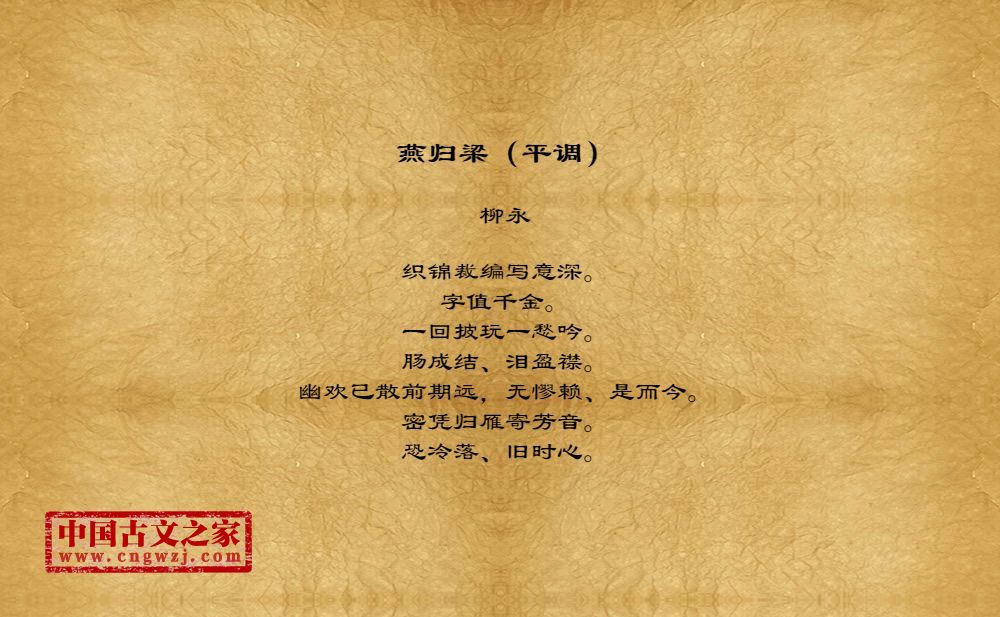 织锦裁编写意深。字值千金。一回披玩一愁吟。肠成结、泪盈襟。幽欢已散前期远,无憀赖、是而今。密凭归雁寄芳音。恐冷落、旧时心。