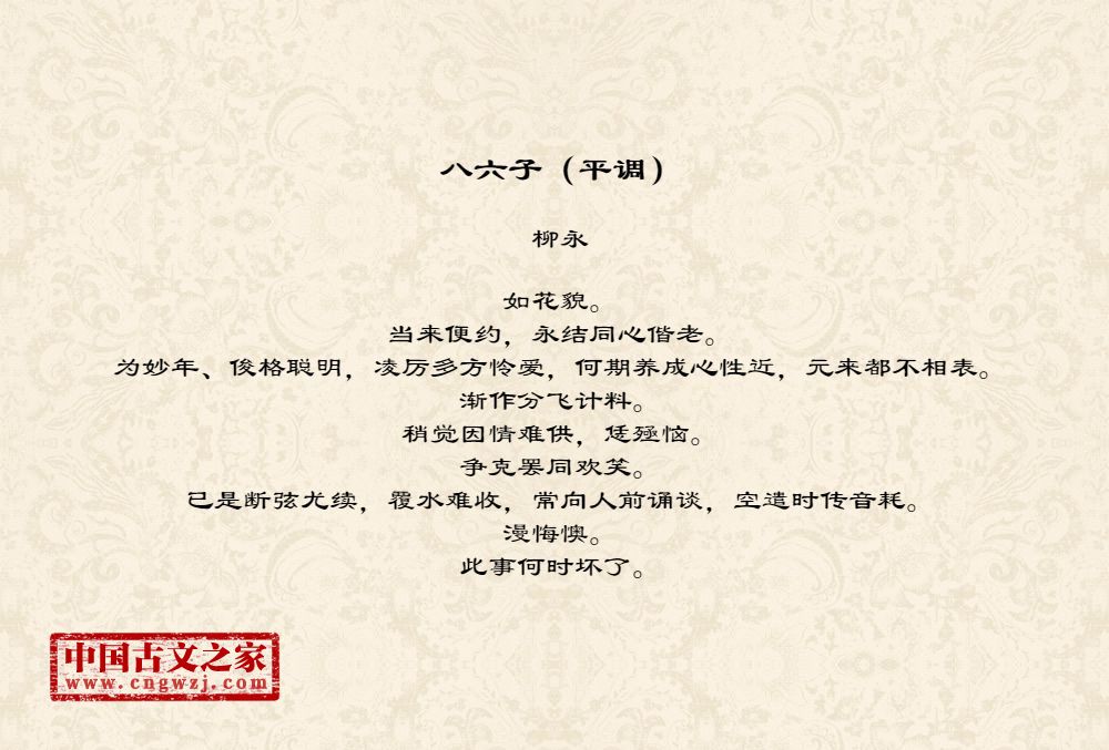 如花貌。当来便约,永结同心偕老。为妙年、俊格聪明,凌厉多方怜爱,何期养成心性近,元来都不相表。渐作分飞计料。稍觉因情难供,恁殛恼。争克罢同欢笑。已是断弦尤续,覆水难收,常向人前诵谈,空遣时传音耗。漫悔懊。此事何时坏了。