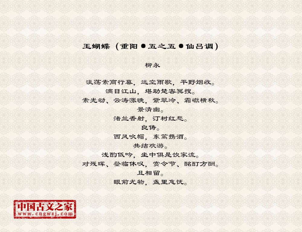 《玉蝴蝶(重阳·五之五·仙吕调)》的原文打印版(柳永)