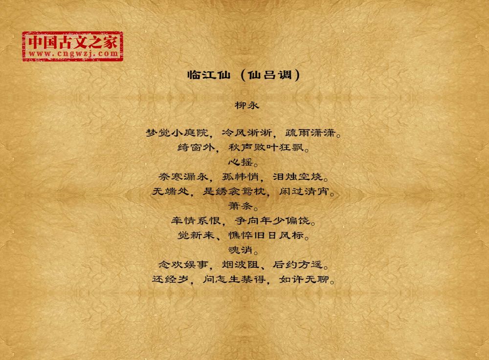柳永,(约987年—约1053年)北宋著名词人,婉约派创始人物。汉族,崇安(今福建武夷山)人,原名三变,字景庄,后改名永,字耆卿,排行第七,又称柳七。