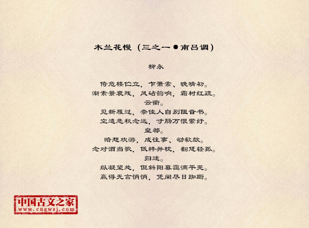 《木兰花慢(三之一·南吕调)》的原文打印版(柳永)