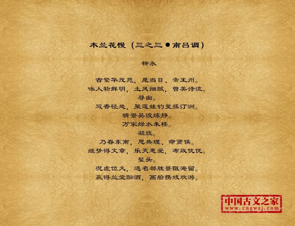 《木兰花慢(三之三·南吕调)》的原文打印版(柳永)