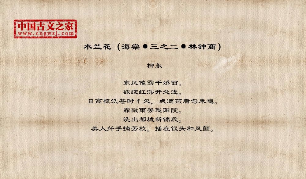 《木兰花(海棠·三之二·林钟商)》的原文打印版(柳永)