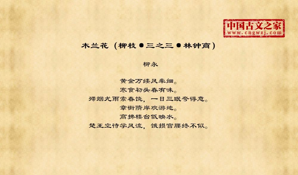 《木兰花(柳枝·三之三·林钟商)》的原文打印版(柳永)