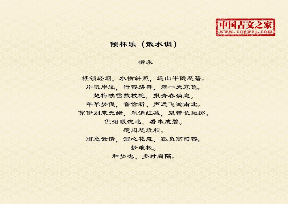 柳永,(约987年—约1053年)北宋著名词人,婉约派创始人物。汉族,崇安(今福建武夷山)人,原名三变,字景庄,后改名永,字耆卿,排行第七,又称柳七。