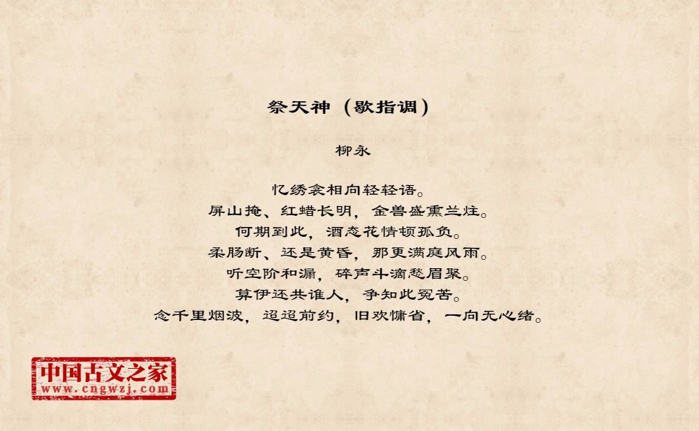忆绣衾相向轻轻语。屏山掩、红蜡长明,金兽盛熏兰炷。何期到此,酒态花情顿孤负。柔肠断、还是黄昏,那更满庭风雨。听空阶和漏,碎声斗滴愁眉聚。算伊还共谁人,争知此冤苦。念千里烟波,迢迢前约,旧欢慵省,一向无心绪。