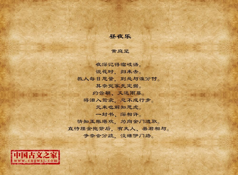 黄庭坚(1045-1105),字鲁直,自号山谷道人,晚号涪翁,又称豫章黄先生,汉族,洪州分宁(今江西修水)人。北宋诗人、词人、书法家,为盛极一时的江西