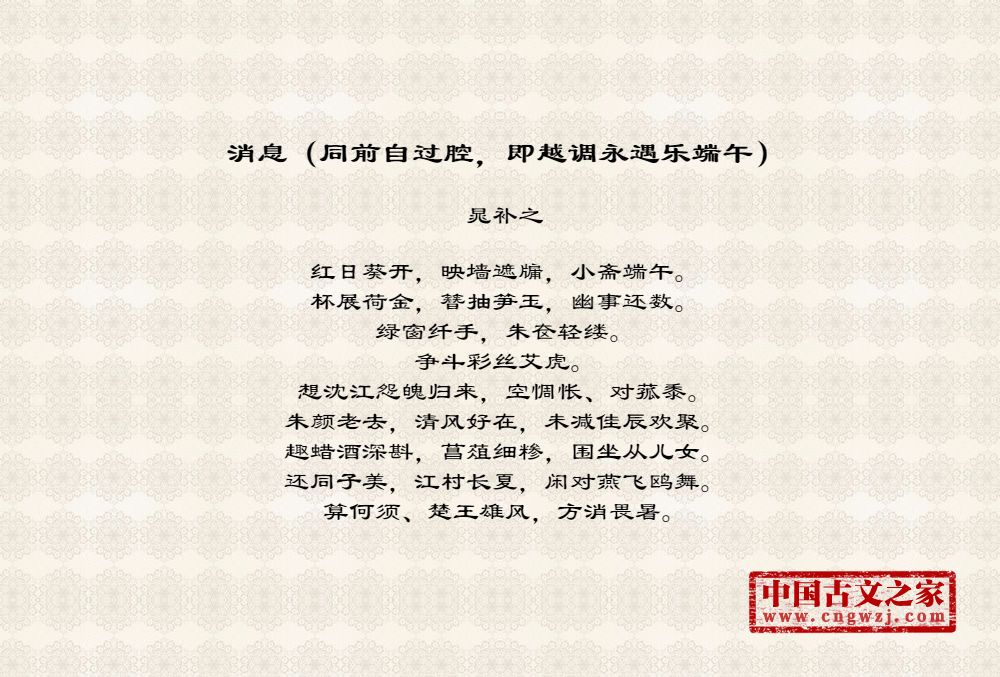 《消息(同前自过腔,即越调永遇乐端午)》的原文打印版(晁补之)