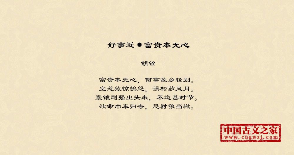 富贵本无心,何事故乡轻别。空惹猿惊鹤怨,误松萝风月。