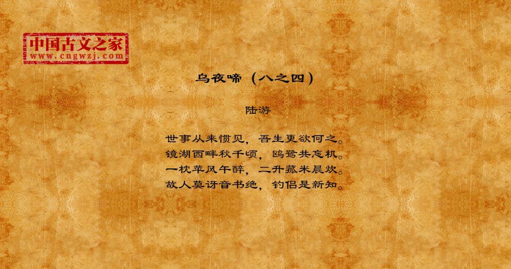 陆游(1125—1210),字务观,号放翁。汉族,越州山阴(今浙江绍兴)人,南宋著名诗人。少时受家庭爱国思想熏陶,高宗时应礼部试,为秦桧所黜。孝宗时赐