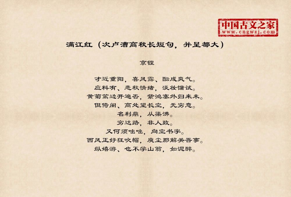 《满江红(次卢漕高秋长短句,并呈都大)》的原文打印版(京镗)