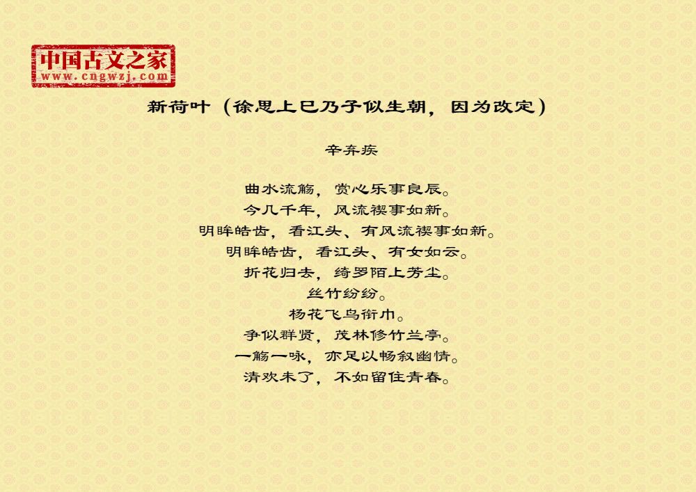 《新荷叶(徐思上巳乃子似生朝,因为改定)》的原文打印版(辛弃疾)