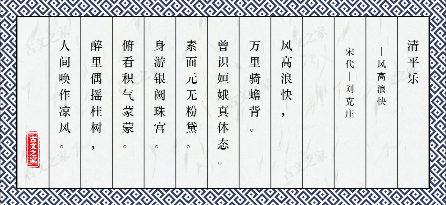 风高浪快,万里骑蟾背。曾识姮娥真体态。素面元无粉黛。身游银阙珠宫。俯看积气蒙蒙。醉里偶摇桂树,人间唤作凉风。