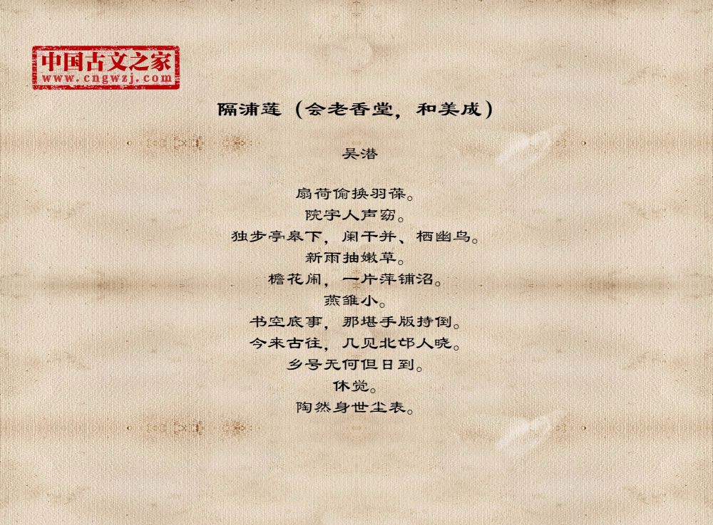《隔浦莲(会老香堂,和美成)》由吴潜创作
