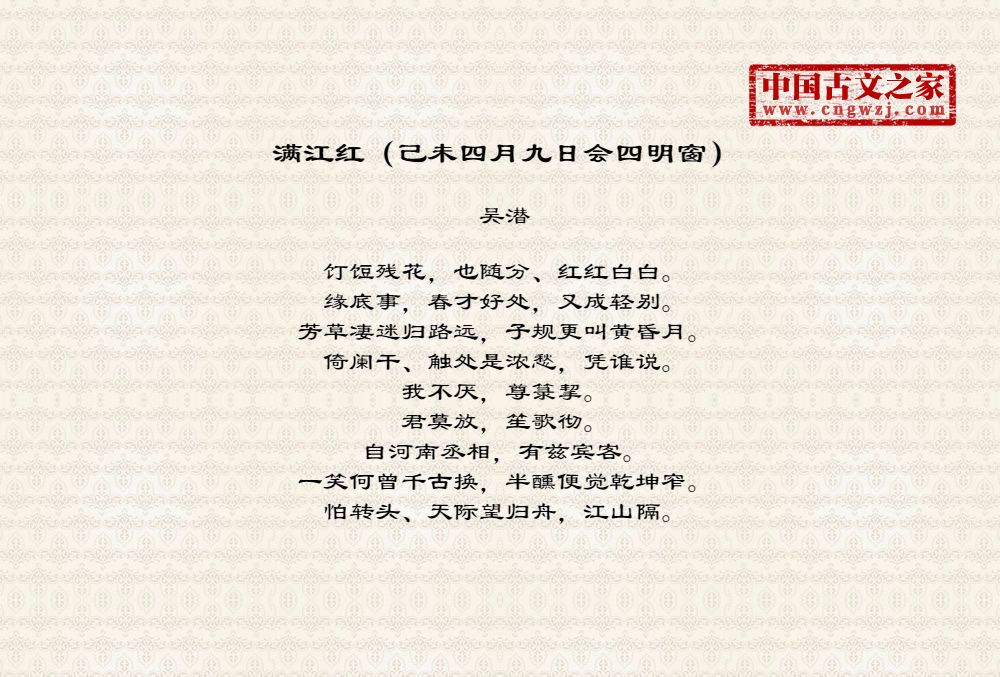 《满江红(己未四月九日会四明窗)》的原文打印版(吴潜)