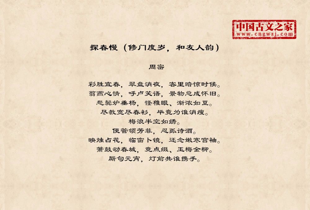 《探春慢(修门度岁,和友人韵)》的原文打印版(周密)