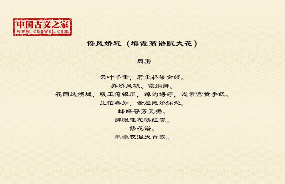 《倚风娇近(填霞翁谱赋大花)》的原文打印版(周密)