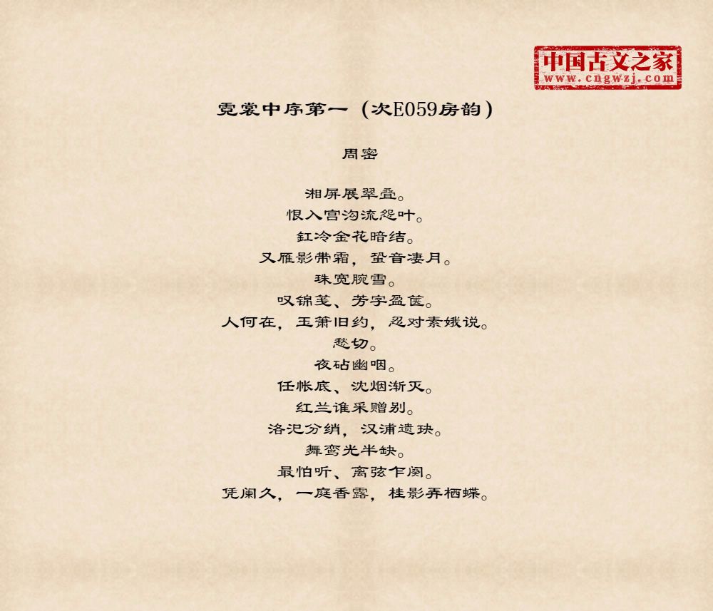 《霓裳中序第一(次E059房韵)》的原文打印版(周密)