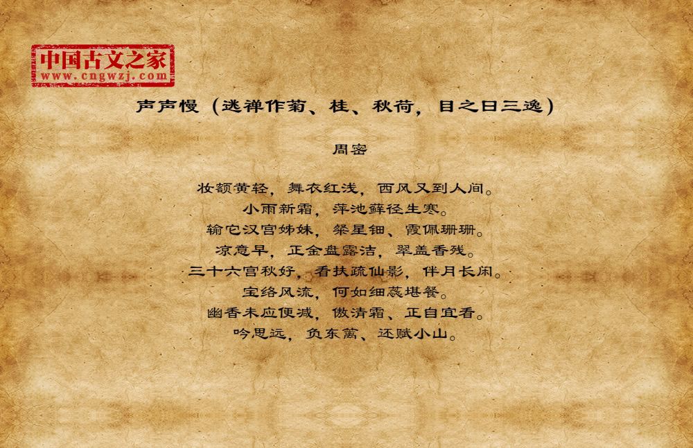 《声声慢(逃禅作菊、桂、秋荷,目之曰三逸)》由周密创作