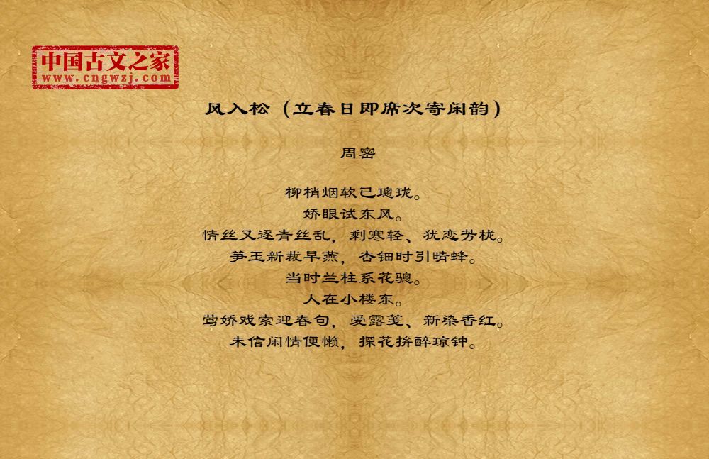 《风入松(立春日即席次寄闲韵)》的原文打印版(周密)