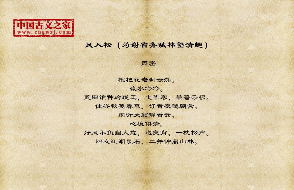 《风入松(为谢省齐赋林壑清趣)》的原文打印版(周密)