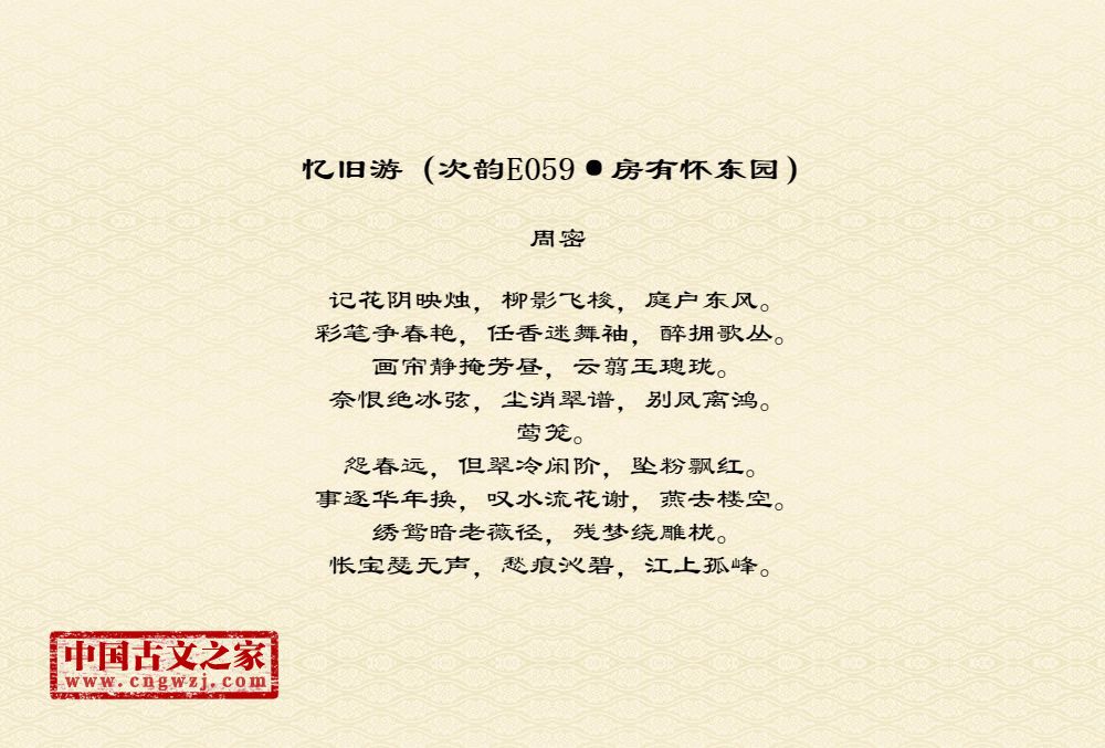 《忆旧游(次韵E059·房有怀东园)》的原文打印版(周密)